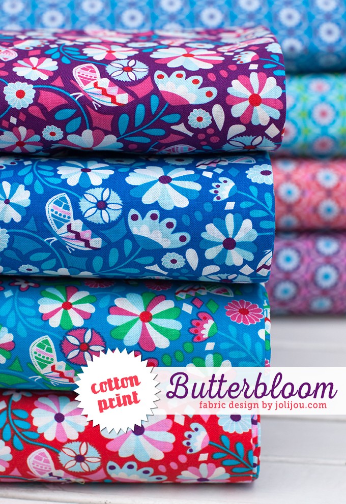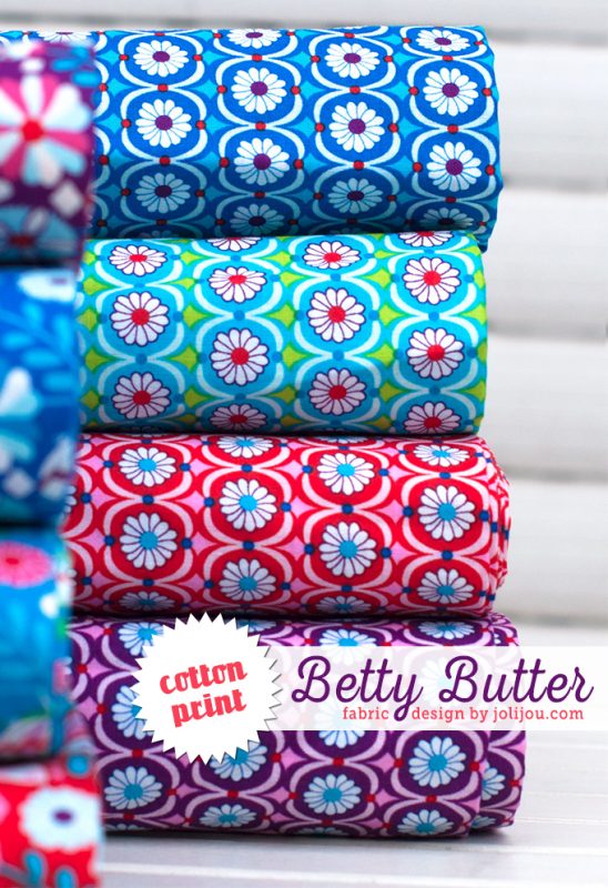 Betty Butter ist nicht nur der ideale Kombipartner für Flutterflirt und Butterbloom, mit seinem Hauch von Retro ist das Design auch ein starker Einzelgänger für alle die es etwas reduzierter mögen. Betty Butter ist in den Farben Marine, Türkis, Rot und Lila erhältlich und wie Flutterflirt und Butterbloom nicht nur auf einer hervorragenden Popeline-Qualität gedruckt sondern auch auf hochwertigem Baumwoll-Jersey der ideal ist für Shirts, Hängerchen, Leggings und noch vieles vieles mehr!