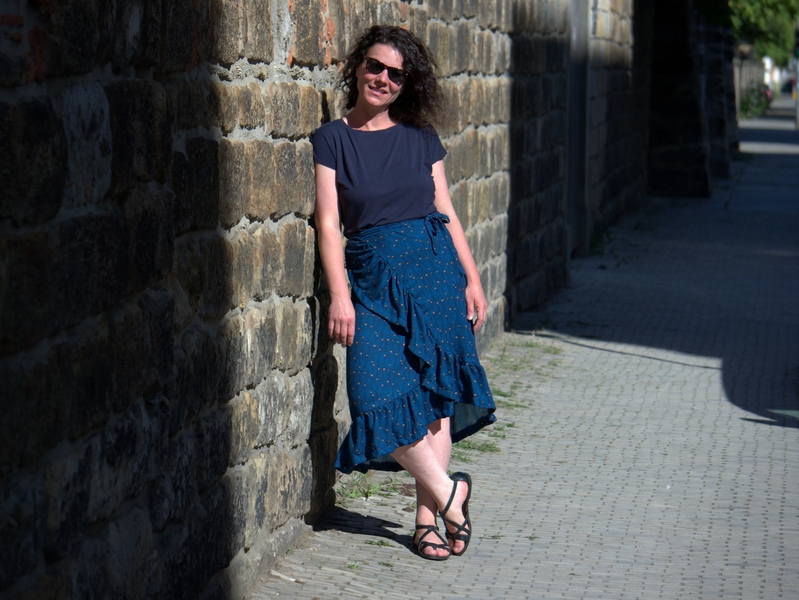 Unser Schnitt STELLA ist ein echter Allrounder, bei dem Individualität und Kreativität groß geschrieben werden! STELLA ist ein Schnitt für ein Shirt, welches aber auch auf Kleiderlänge verlängert werden kann. Der Schnitt harmoniert perfekt mit unserem Wickelrock WILMA, der durch den extra Volant alle Blicke auf sich zieht. Beide Schnitt kannst du im Alltag allein, aber auch miteinander kombiniert anziehen.