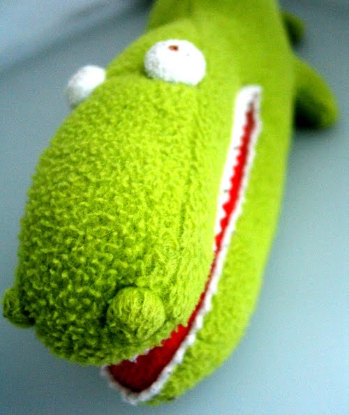 We’ve always had a weakness for ugly funny creatures (even before we had kids as an excuse for buying them), so he’s in good company. For example, we’re madly in love with this goofy grinning croc,