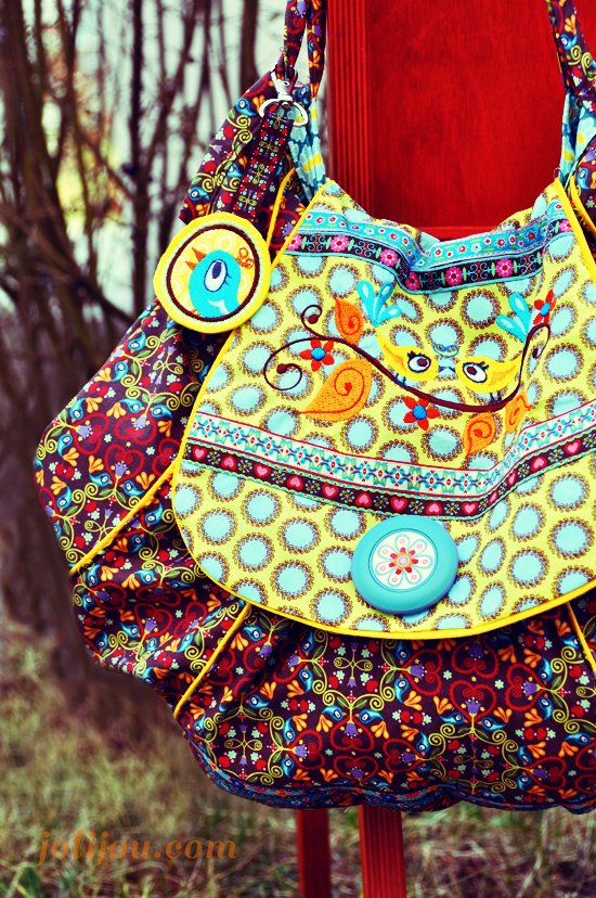 Dass ich die Mini-Turn-Verschlüsse liebe habe ich ja schon das ein oder andere Mal erwähnt. Deshalb bin ich natürlich auf diesen hier ganz besonders stolz. Denn, habt ihr es erkannt? Er ist im Jolijou-Design! Ich durfte nämlich für die liebe Sonni von Kunterbuntdesign ein paar hübsche wetterfeste Sticker für die Verschlussmitte entwerfen und so könnt ihr nun aus verschiedenen Designs euren Lieblings-Verschluss, passend zur Tasche, wählen. Pefekt oder?