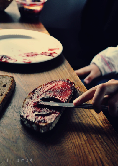 Allderweil wurde zum Glück unten schon fleißig Brote geschmiert. (Warum eigentlich den Teller benutzen, wenn man so einen großen Tisch hat….*stöhn*)