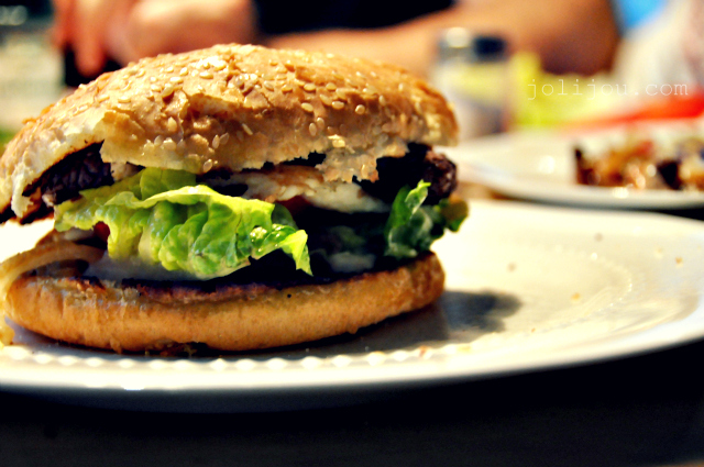 Squeezed into two sesame roll halves and accompanied by fried onions, cheese, mayo, tomato sauce, lettuce, beetroot, tomatoes and a juicy beef steak aka dinner aka Aussie styled steak burgers.