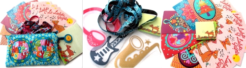 The second prize is a set of cool iron-ons, a piece of Music-In-My-Heart-Ribbon and a small yodelling deer notepad. Third prize is a set of postcards and a small yodelling deer notepad.
