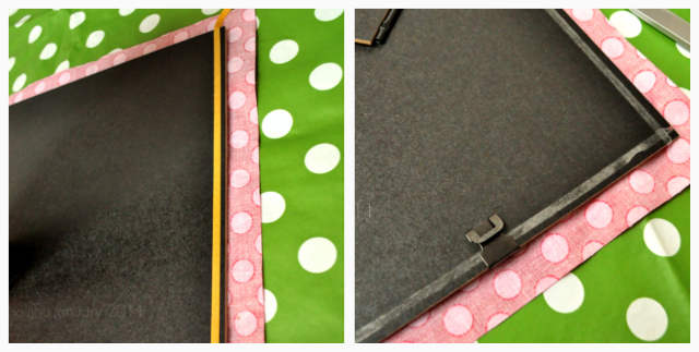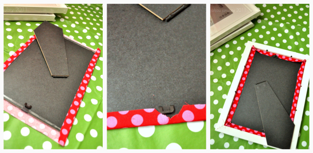 Using the backing of the frame as a template cut a piece of fabric leaving a seam allowance of about 2cm.