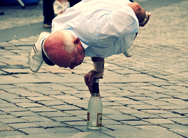 Der Opi mit der Flasche ist ja der Knaller! Da musste ich zweimal hingucken, und dann schmunzeln… 😀