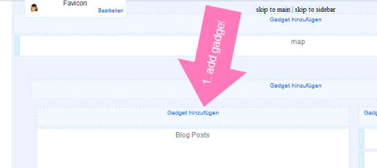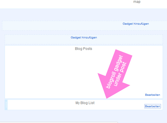 Das Blogroll-Gadget verschiebt ihr so, dass es unter dem Post-Gadget liegt.