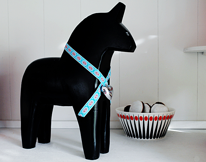 Ebenfalls von Ikea ist diese Keksdose, aber das Muster darauf gefiel mir nicht, also habe ich die Dose mit Stoff bezogen (hinten mit Kamsnaps zum Abnehmen, Anleitung dazu hier).