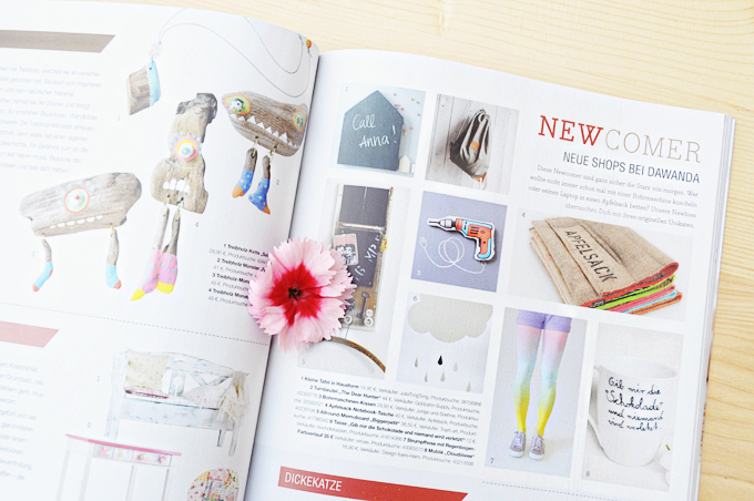Ich finde es toll, so viele kreative Ideen aus den vielen Dawanda-Shops Schwarz auf Weiß zu haben, so kann man immer wieder darin blättern, sich inspirieren, ideen für Geschenke holen, Produkte kennenlernen die man vielleicht auf den Online-Seiten noch nicht wahrgenommen hatte und sich über Trends und Events der deutschen Kreativszene informiert halten.
