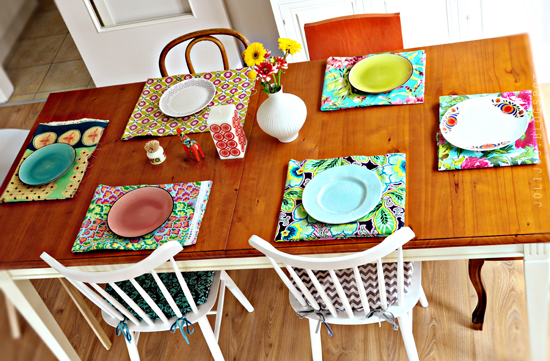 Ihr habt es hier vielleicht gemerkt, ich bin gerade dabei, Stoffe für neue Platzsets auszusuchen. Ich finde die Stoffwahl ist immer das zeitintensivste Unterfangen am Nähen. Obwohl ich mit der Zeit und der Erfahrung (vor allem die, dass es Schlimmeres im Leben gibt *lach*) schon etwas besser und mutiger geworden bin ist es immer noch am Schlimmsten wenn ich unter Stoffverarmungsängste leide, denn dann könnte es ja sein, dass ich einen heißbegehrten, nicht mehr erhältlichen Stoff versehentlich zuschneide und hinterher feststelle, dass ich ein Fehler gemacht habe. Aaargh! Ich meine klar, es ist nur Stoff, aber trotzdem was ist wenn ich für das nächste Projekt genau diesen Stoff und keinen anderen brauche?