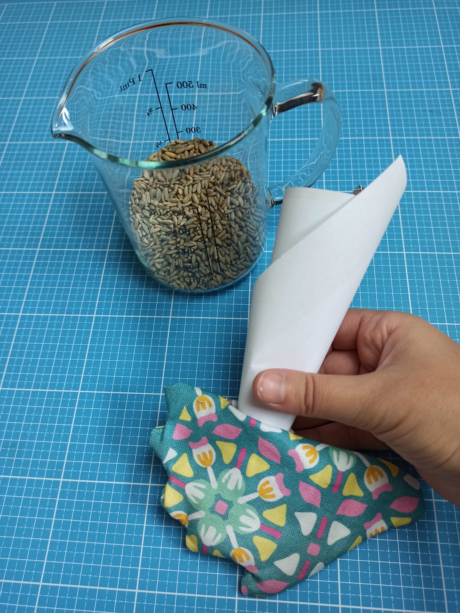 Schritt 8: Weiter geht es mit dem Befüllen deines DIY Handwärmers. Nutze hierfür die dafür vorgesehenen Füllung (also die Reiskörner, Kirschkerne, o.ä.). Kleiner Tipp: Falls du keinen Trichter hast, kannst du dir ganz einfach ein Blatt Papier zu einem Trichter formen.