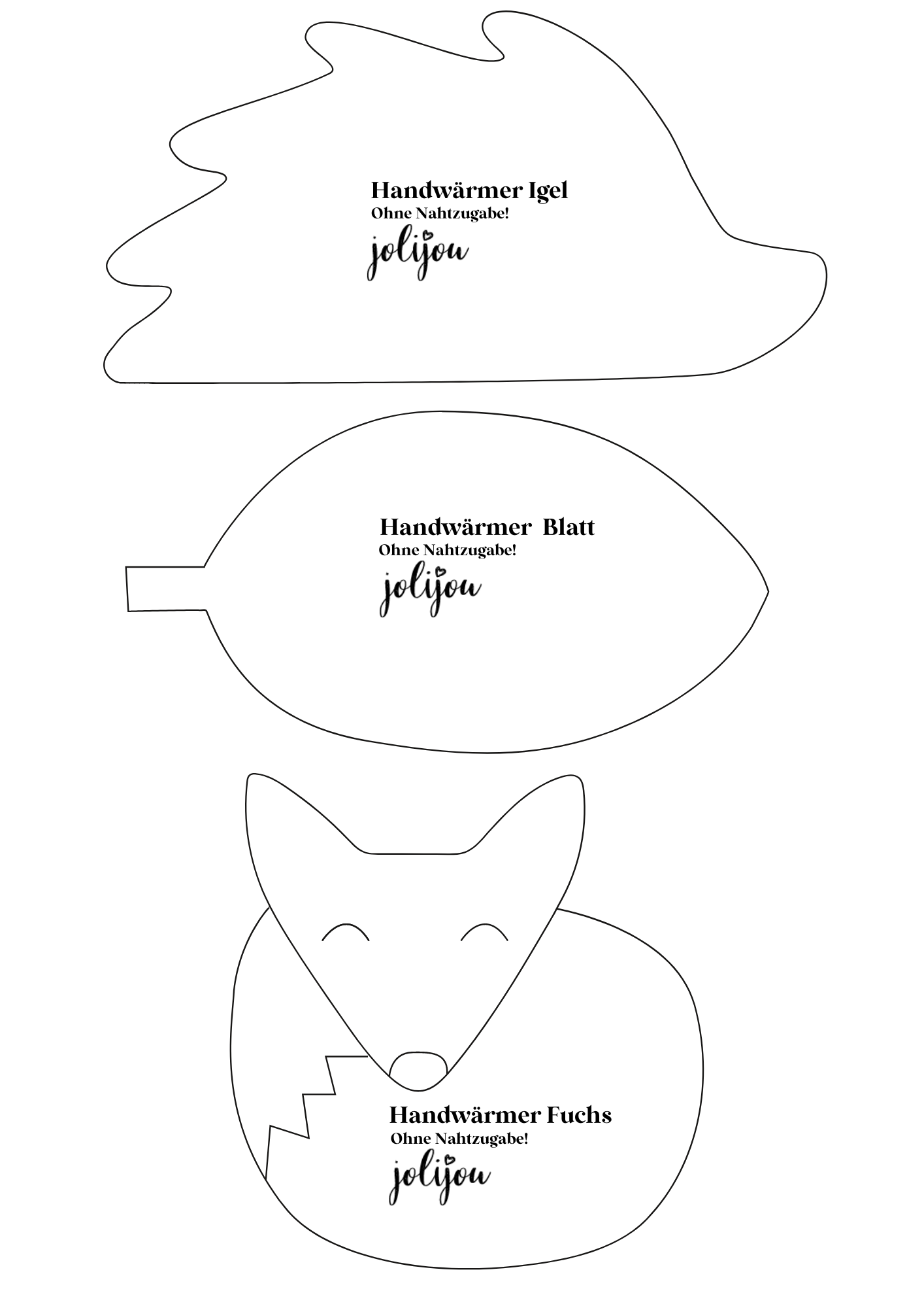 • Die Jolijou Handwärmer Vorlage (bestehend aus Igel, Blatt und Fuchs):