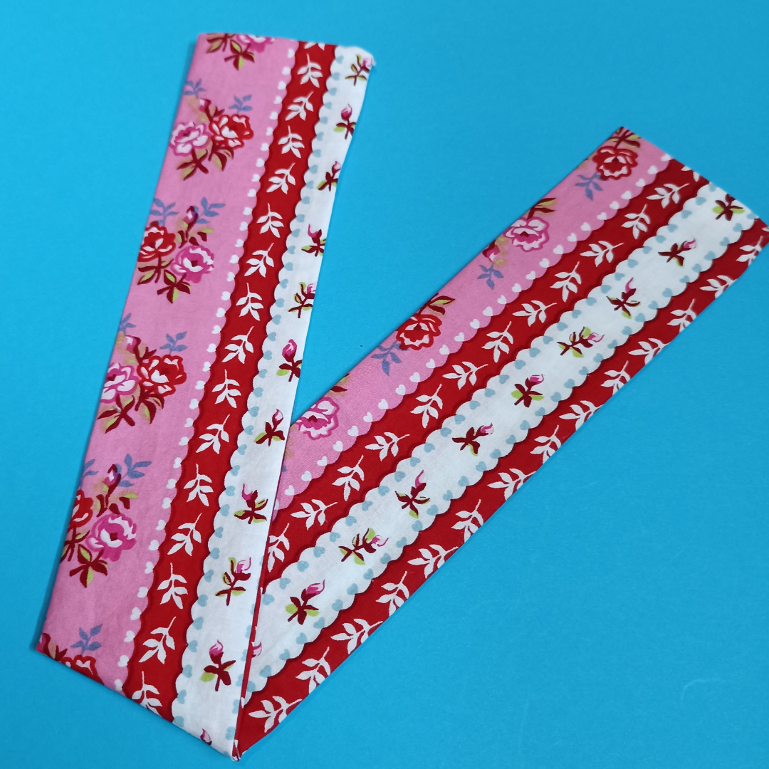 - Schneide zunächst einen Stoffstreifen mit den Maßen 55 x 10 cm zu