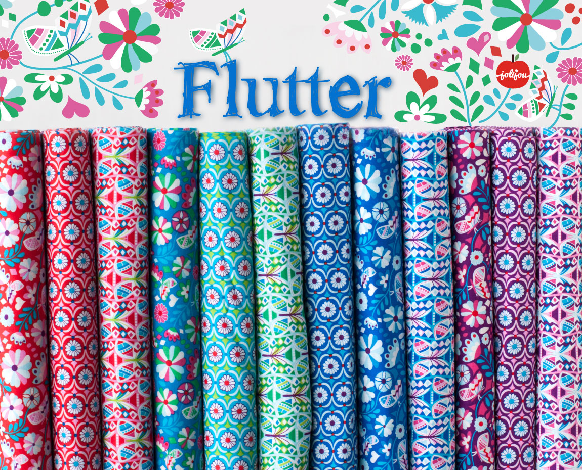 Flutter ist meine Sommerkollektion 2015 die ich für den Stoffgroßhändler Swafing entworfen habe. Flutter sind kleine Schmetterlinge die über bunte Blumenwiesen hüpfen und ganz viel Lebensfreude und Sommerfeeling mit sich bringen. Die Stoffe werden auf der Handarbeit & Hobby Messe in Köln vom 27.-29. März 2015 auf dem Swafing Messestand erstmalig dem Fachhandelspublikum präsentiert. Sie sind für Gewerbetreibende ebenfalls im Swafing-Shop erhältlich. Anfang Mai liegen sie dann europaweit im Handel aus.