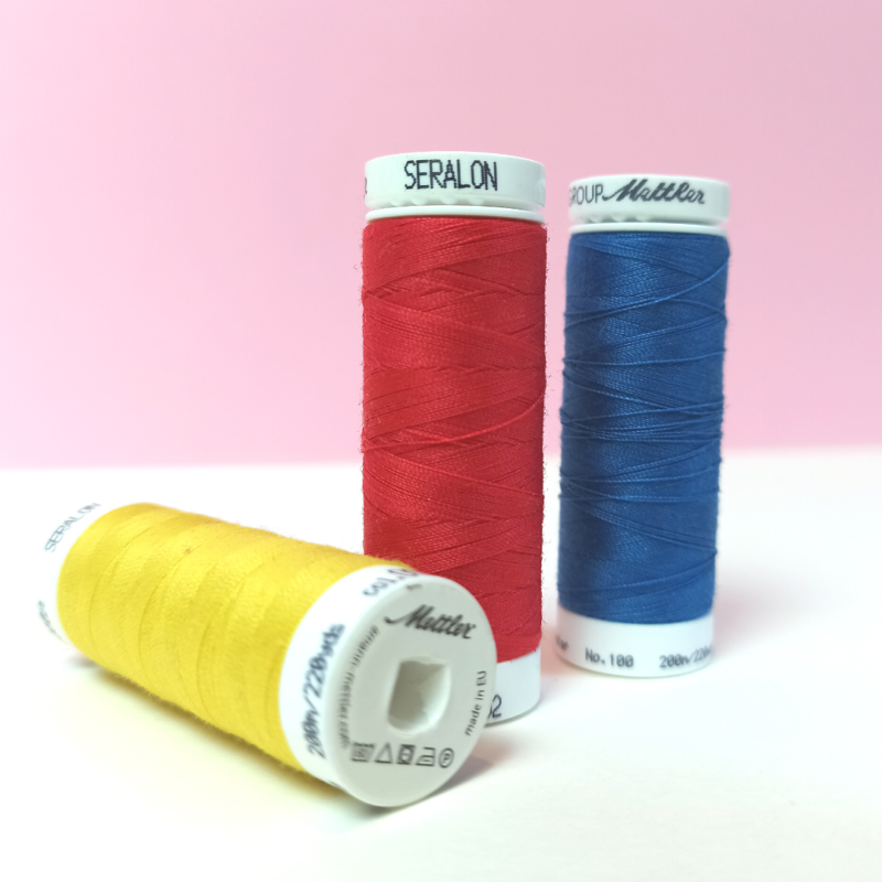 Und mit dem Garn haben wir auch schon die drei wichtigsten Komponenten des Nähens abgedeckt. Ich verwende liebend gerne das SERALON oder SERACYCLE von Mettler – das sind nämlich absolute Alleskönner aus 100 % Polyester bzw. 100 % recycelten PET Flaschen. Mehr zu den unterschiedlichsten Garnen kannst du HIER finden.