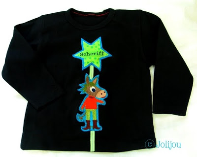 Beim Jungenshirt hat sich ein kleiner Rechtschreibefehler eingeschlichen… 😛 Den Sheriff hast DU jedenfalls richtig geschrieben! *grins*