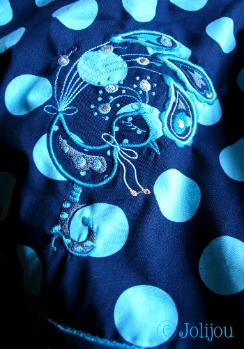 and embroidered with Nic’s gorgeous must-have „Hanspeter Peacock“ Designs that will be available as of tonight at Huups!