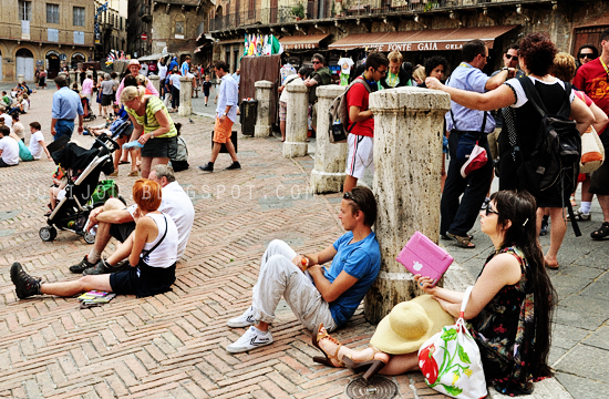 Auch jenseits des Pferderennens ist der Campo sehr beliebt und viele ruhen sich hier aus, genießen eine Pizza, ein Cafe oder ein Eis und ich hatte das Gefühl auch sie spüren die Magie des Platzes und lassen ihn einfach auf sich wirken.