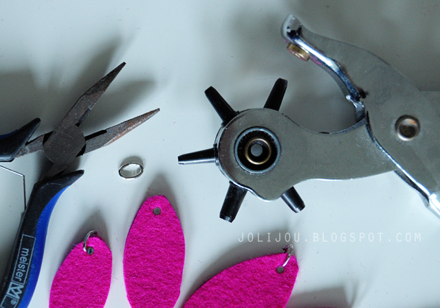 Im Ernst, es geht wirklich super easy. Filzteile in Blattform ausgeschnitten, mit der Lochzange kleine Löcher reingestanzt, Ringe angebracht und diese dann auf Schmuckdraht im Wechsel mit langen Perlen angebracht. Noch einen Verschluss dran und fertig!