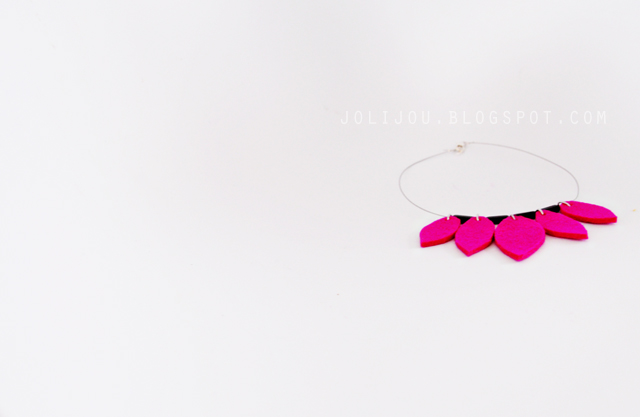 Und da ich von Swafing so wunderschönen Wollfilz in dieser megacoolen Knallerfarbe bekommen habe, habe ich mir heute in nullkommanix (vom kurzen Trip in die Stadt und der damit verbundenen Parkplatzsucherei zum Perlentaucher des Vertrauens mal abgesehen) eine tolle Kette gezaubert.