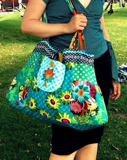 …here in all her patchworked glory as a spacious beach bag for daytrips, excursions to the lake, the picnic in the park with the kids or the fabric market dive with a lovely blog-friend.