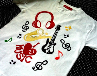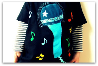 Dazu hat die liebe Elke ein paar Velours aus meinen Designs gemacht die diese Vorlagen wunderbar ergänzen und ebenfalls ab Donnerstag bei Farbenmix zu haben sind. Das sind zum einen die Noten die um das Mikro tänzeln oder wer gänzlich zu faul ist zum Nähen, gestalte sich einfach aus einem schnöden weissen Shirt ein neues Lieblingsshirt für Frau Tochter (sogar so Lieblings, dass sie es heute – wider meines Verbots ;o) – schon wieder trägt, und ich daher kein besseres Foto machen konnte).