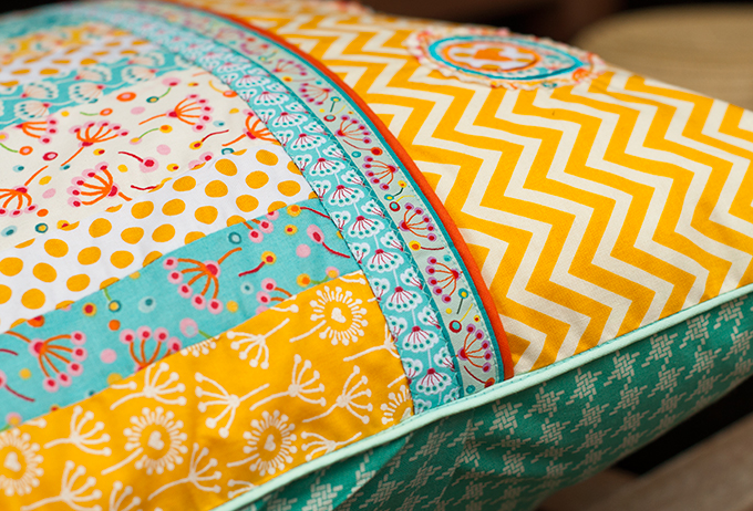 die Kissen – und der Quilt – sehen toll aus und die Stoffe sind so schön farbenfroh, dass es sich darauf bestimmt nochmal so gut träumen lässt.