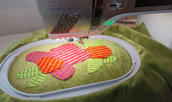 Seitdem die Jolijou Stickdateien wieder in den Shop gezogen sind, steht Kiras Stickeinheit ihrer B590 Crystal Edition nicht mehr still. Und die Muster, die daraus entstehen, sind absolut fein, sauber und im Stichbild perfekt. Es macht richtig Spaß, der Maschine beim leisen “Malen” der Motive zuzusehen.