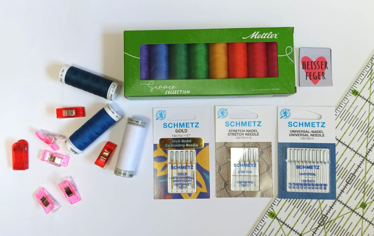Kira ist ein stressfreier Nähalltag am wichtigsten. Deshalb gehört zu ihrem Lieblingsmaterial alles, was ihr das Nähen erleichtert. Dazu gehören Stoffklammern, ein großes Lineal, farbenfrohes Garn und Nähmaschinennadeln für wirklich jede Stoffqualität. Tolle Stoffe, als auch kleine Etiketten, die ein genähtes Teil zum Hingucker werden lassen, dürfen natürlich auch nicht fehlen.