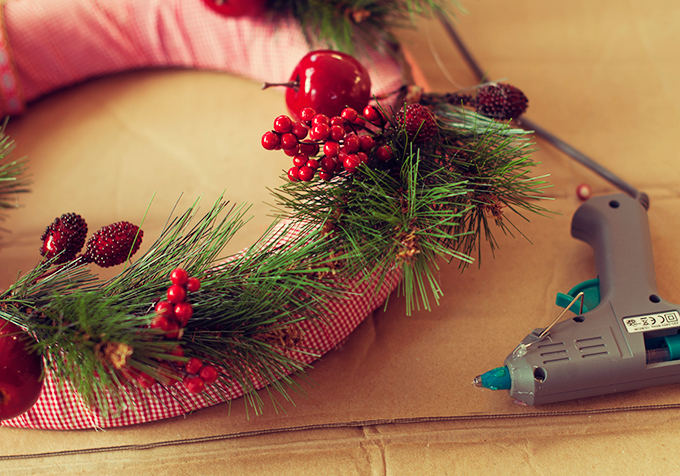 Jetzt darf nach Herzenslust geklebt werden. Je mehr desto besser, denn zu Weihnachten darf es ja ruhig etwas üppiger sein.
