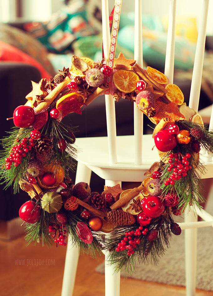 der Kranz ist einfach nur BÄÄÄM. So knallig und kitschig und viel und irgendwie total cool. Ich sammle gerade all die ganzen schönen Adventskränze, vielleicht hast du ja Lust deinen zu verlinken: http://www.craftaliciousme.com/24-days-christmas-advent-wreath-2013/