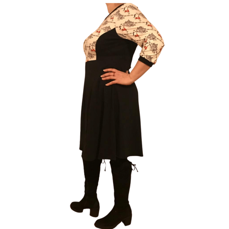 Sabine hat die Teilungen des Kleides verwendet, um ihre Jill aus zwei verschiedenen Stoffen zu nähen. So ist ein wahres Einzelstück entstanden!