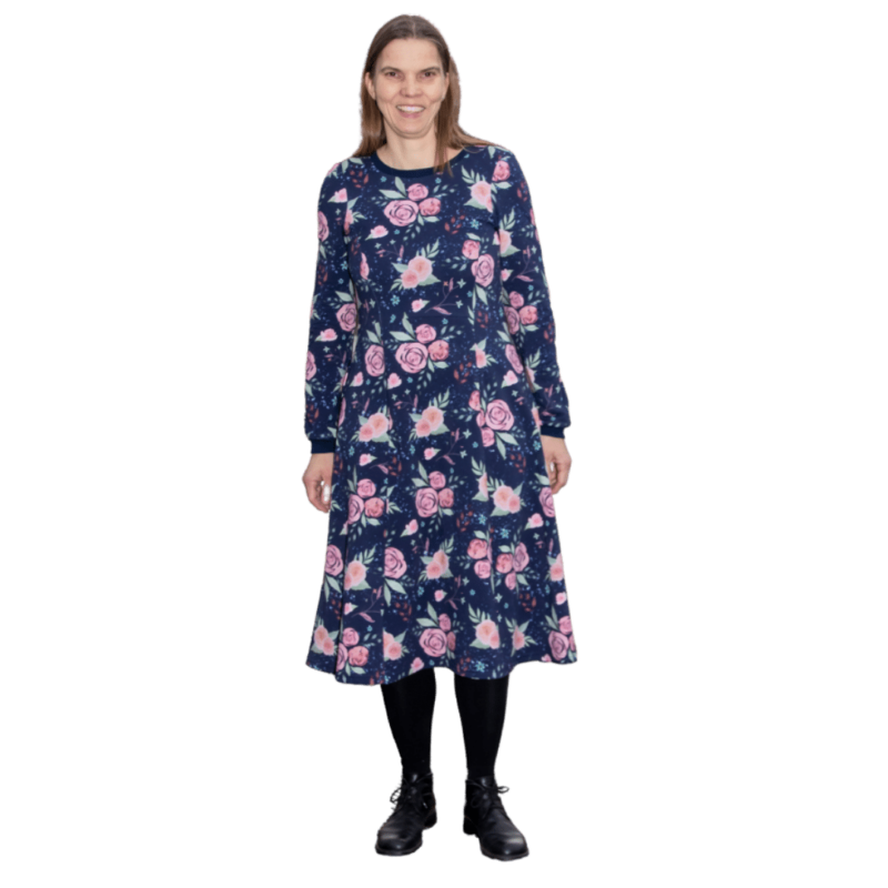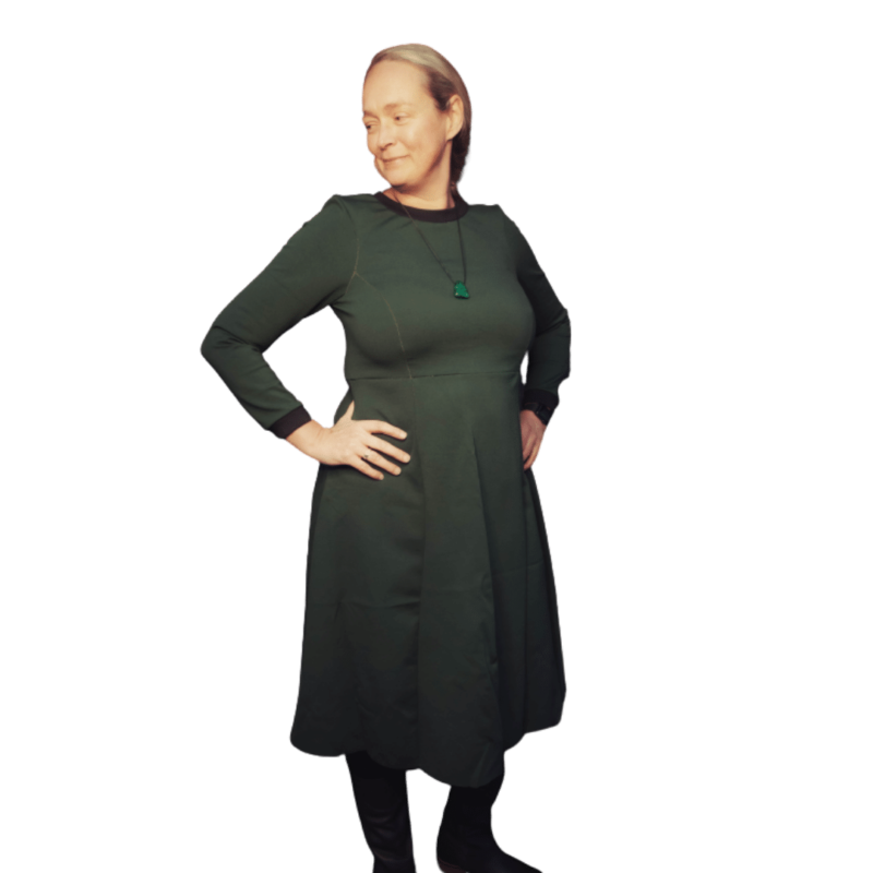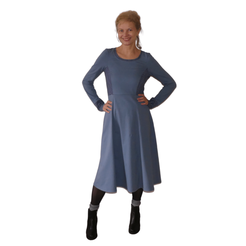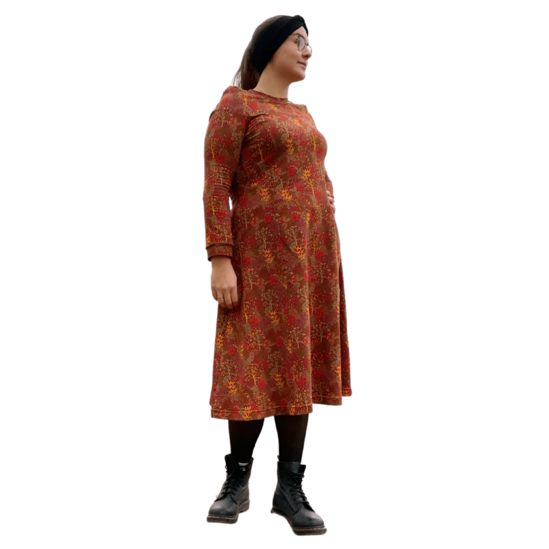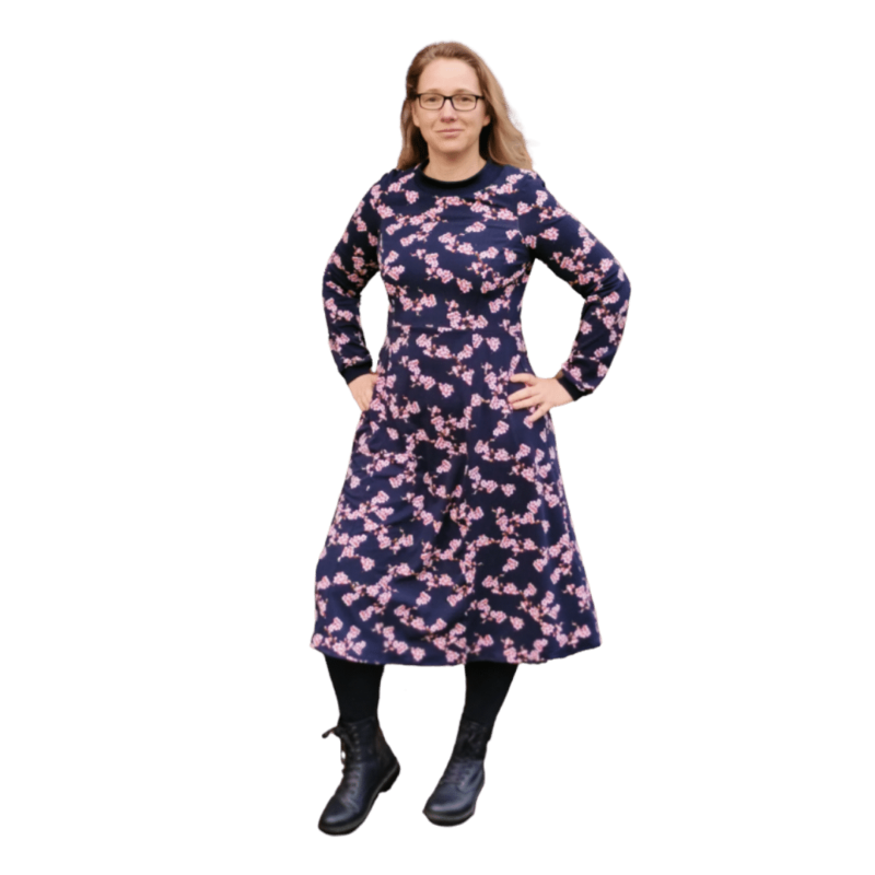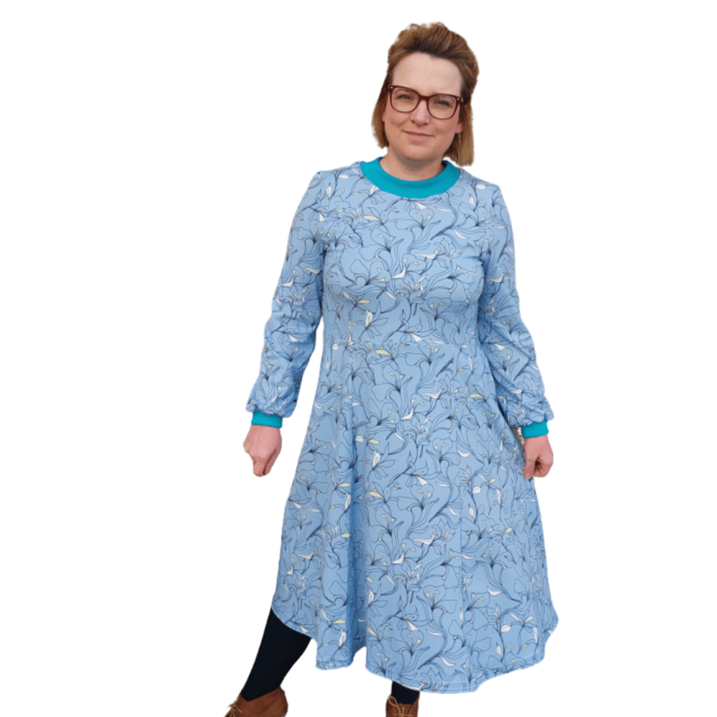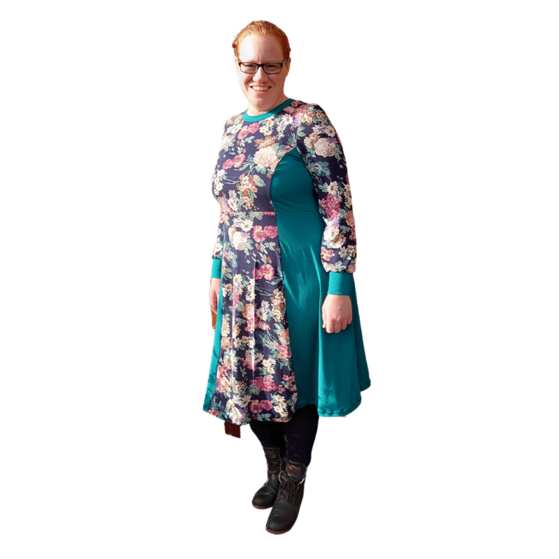Änderungen: das Kleid wurde in Größe 38 genäht, die Taille jedoch auf Größe 42 angepasst. Außerdem wurden die Armbündchen verlängert