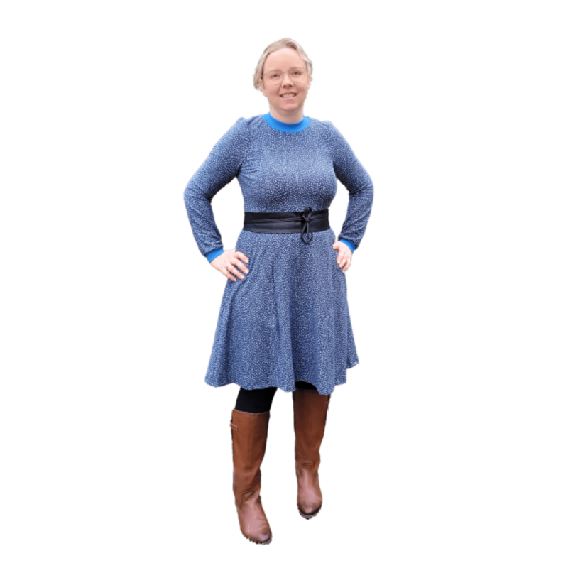 Jenny hat eine absolut alltagstaugliche Jill genäht. Einfach perfekt zur Leggings und hohen Stiefeln. Durch einen extra Gürtel wird die dünne Taille sogar noch mehr betont.