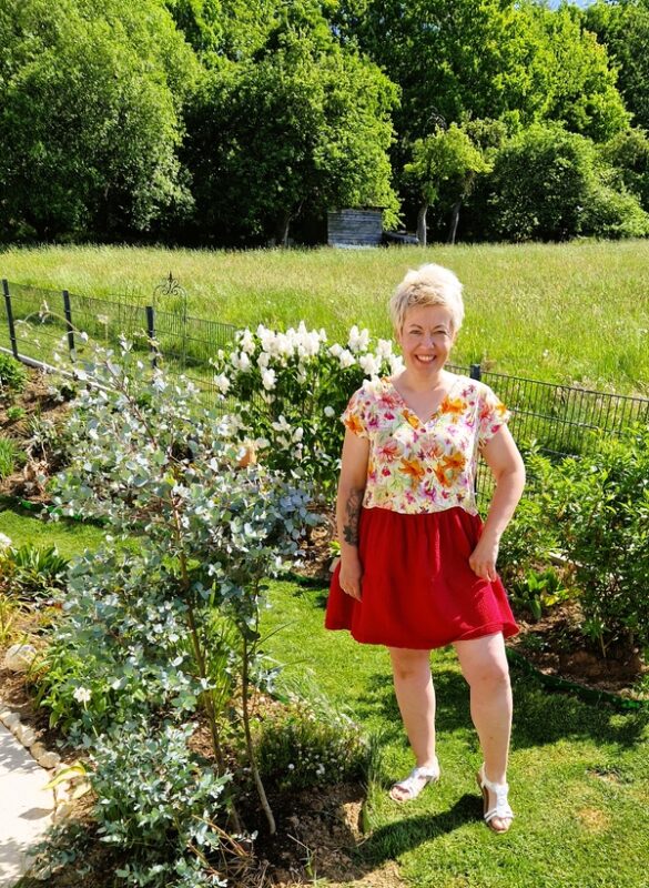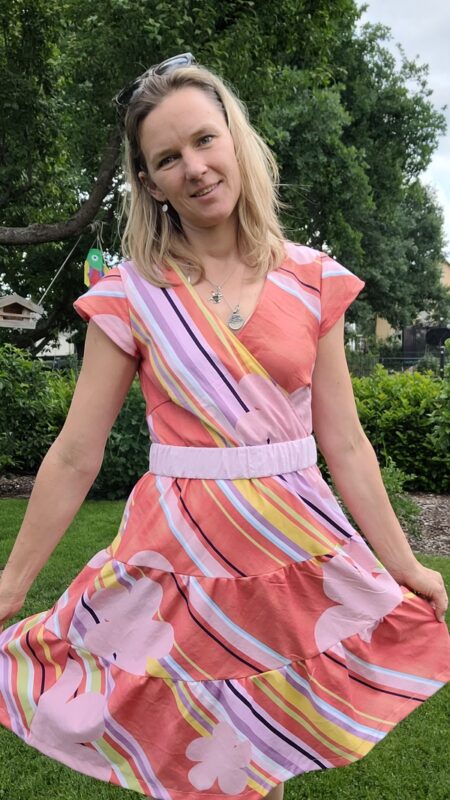 Doreen strahlt auf den Fotos ganz viel Lebensfreude aus – nicht nur durch ihr Lächeln, sondern auch durch die tollen, bunten Farben, in der sie ihre Juni genäht hat.