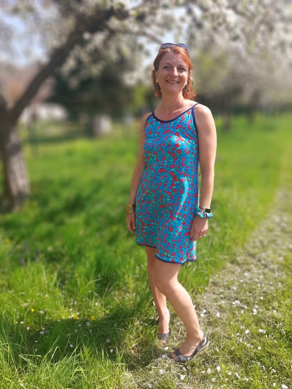 "Blitzschnell genäht, knapp 2 Stunden insgesamt, für einen grossen WOW Effekt! Viele Variationsmöglichkeiten, als Top, als Kleid, mit Neckholder oder gekreuzten Trägern, los geht's und vive l'été!"