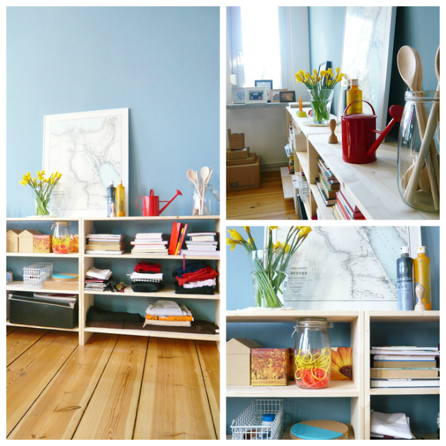Bis vor kurzem hatte ich meine Materialien überall im Haus verteilt. Damit sich das langsam ändert habe ich letzte Woche angefangen mir ein eigenes Arbeitszimmer einzurichten. Dafür wollte ich gerne flache Regale oder Kommoden haben, in denen ich die ganzen Kleinigkeiten unterbringen kann. Da mein Mann leider keine Lust auf IKEA hatte, habe ich mir kurzerhand ein paar Bretter im Baumarkt besorgt und sie zu Regalen zusammengeschraubt. Wie einfach das ging! Ich bin selbst immer noch total begeistert davon 🙂