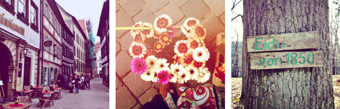 Erst in Bamberg bei unseren lieben Freunden, mit denen wir zwischen all der Feierei auch eine Naturwanderung in den Wildpark unternahmen, wo es neben alten Eichen auch seltene Schafrassen zu sehen gab,