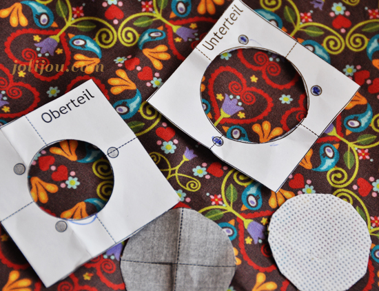 Das Einbauen der Verschlüsse geht übrigens dank der mitgelieferten Schablonen super easy! Einfach wie eingezeichnet ein Loch einschneiden und die Verschlüsse reindrehen. Fertig! Und Sonni wäre nicht Sonni wenn sie nicht auch noch die passende Vlieseline zum direkten Aufbügeln und Verstärken mitliefern würde.