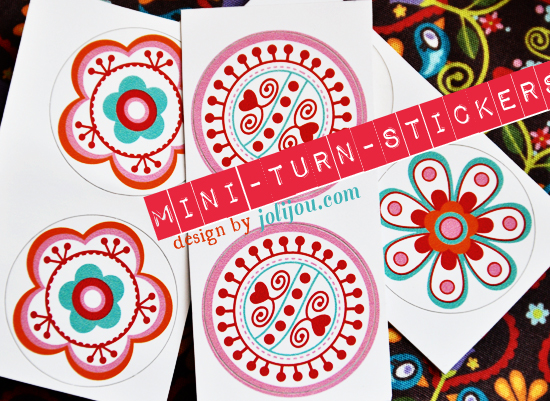 Dass ich die Mini-Turn-Verschlüsse liebe habe ich ja schon das ein oder andere Mal erwähnt. Deshalb bin ich natürlich auf diesen hier ganz besonders stolz. Denn, habt ihr es erkannt? Er ist im Jolijou-Design! Ich durfte nämlich für die liebe Sonni von Kunterbuntdesign ein paar hübsche wetterfeste Sticker für die Verschlussmitte entwerfen und so könnt ihr nun aus verschiedenen Designs euren Lieblings-Verschluss, passend zur Tasche, wählen. Pefekt oder?