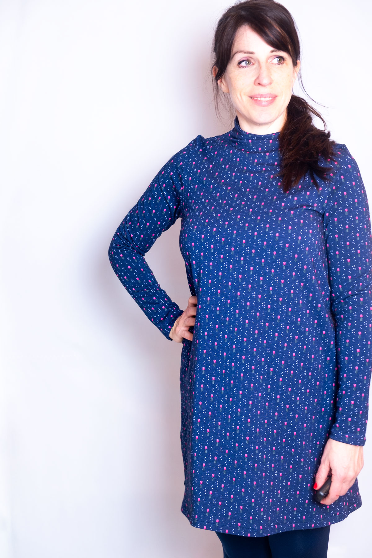 Das Ebook enthält zwei Varianten. Einmal kannst du damit einen Pullover nähen und einmal ein Minikleid wie hier von Jeanette so wunderschön umgesetzt. Das Kleid ist echt kuschelig und so süss im Frühjahr, Herbst und im Winter zu Leggings, Strumpfhosen und Stiefeln. Ein Kleidungsstück und angezogen. Ich lieb das!