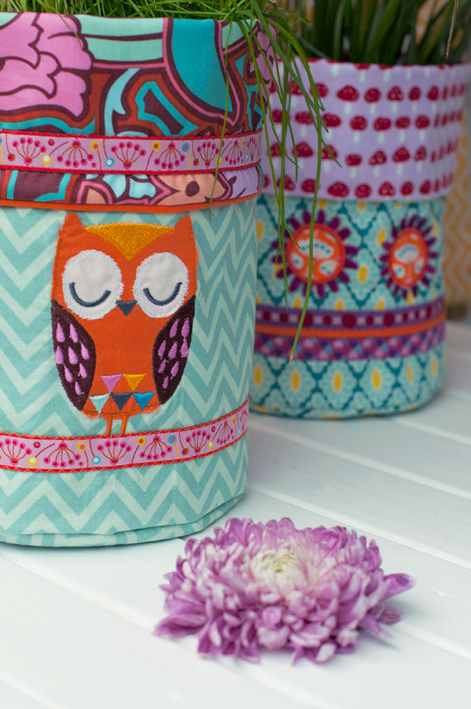 Ich lasse sie bei mir zu Hause in ihrem natürlichen Habitat auf Pflanzentopf-Überzieher für meine Blümchen und meinen verkrüppelten Schnittlauch verweilen.