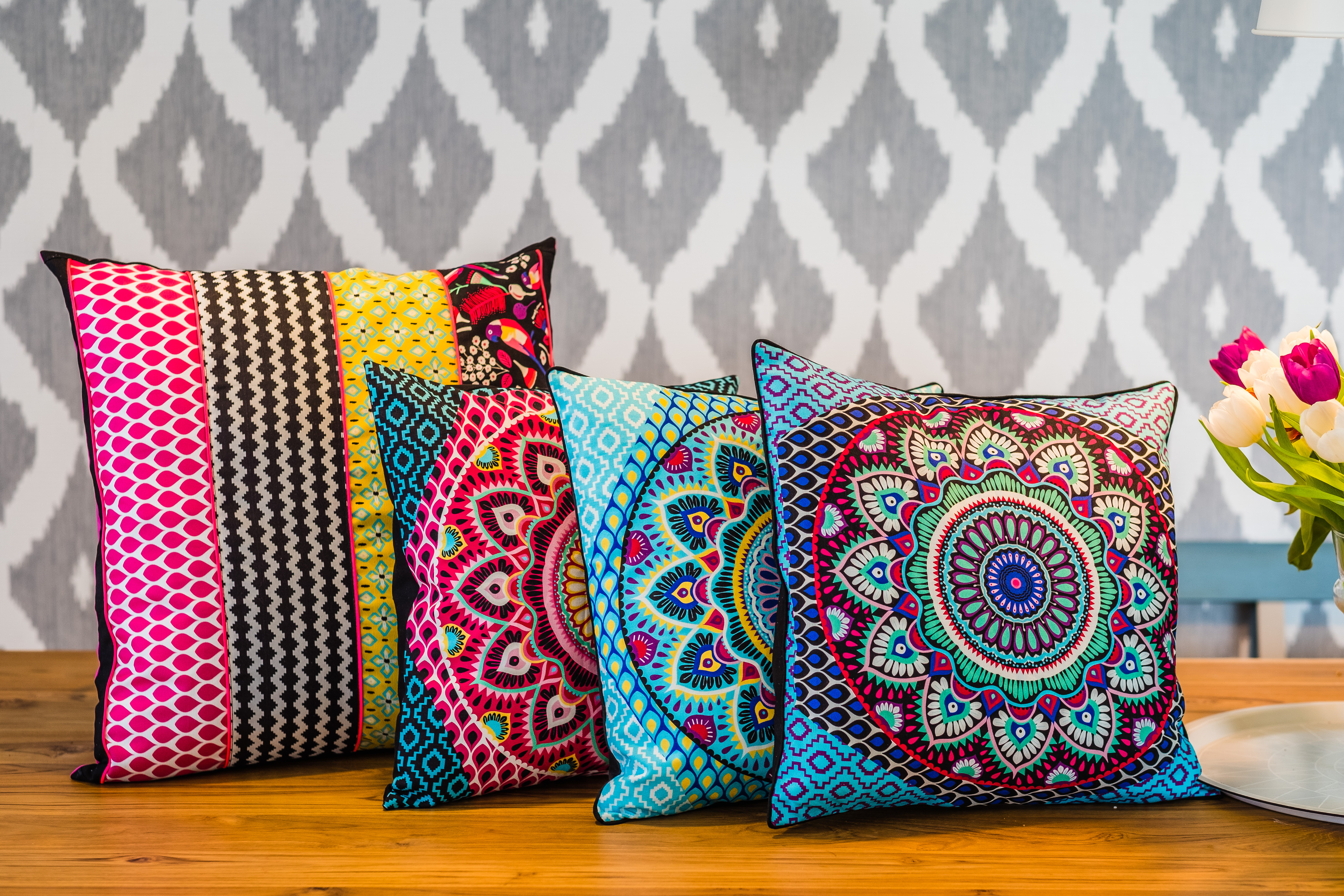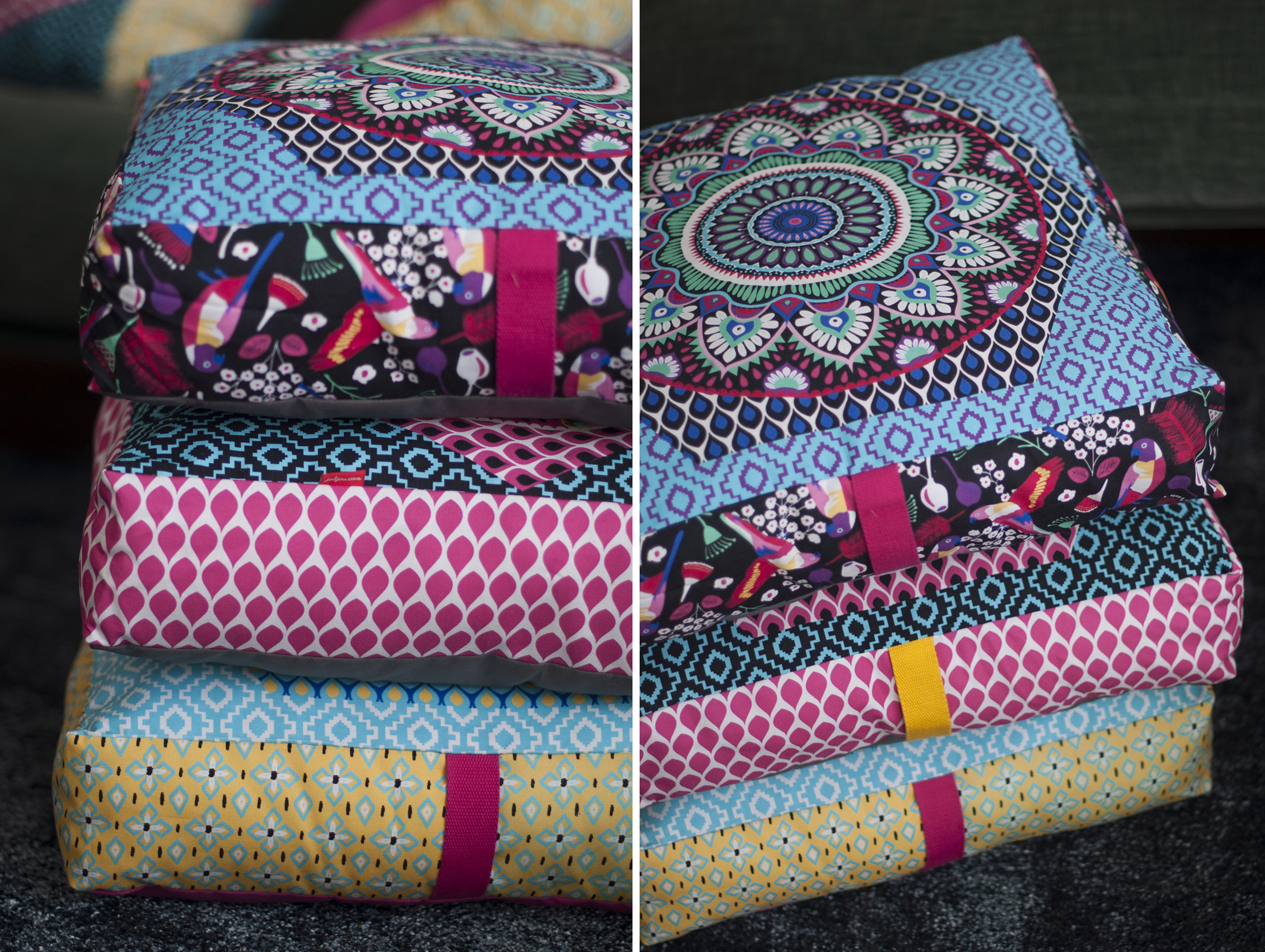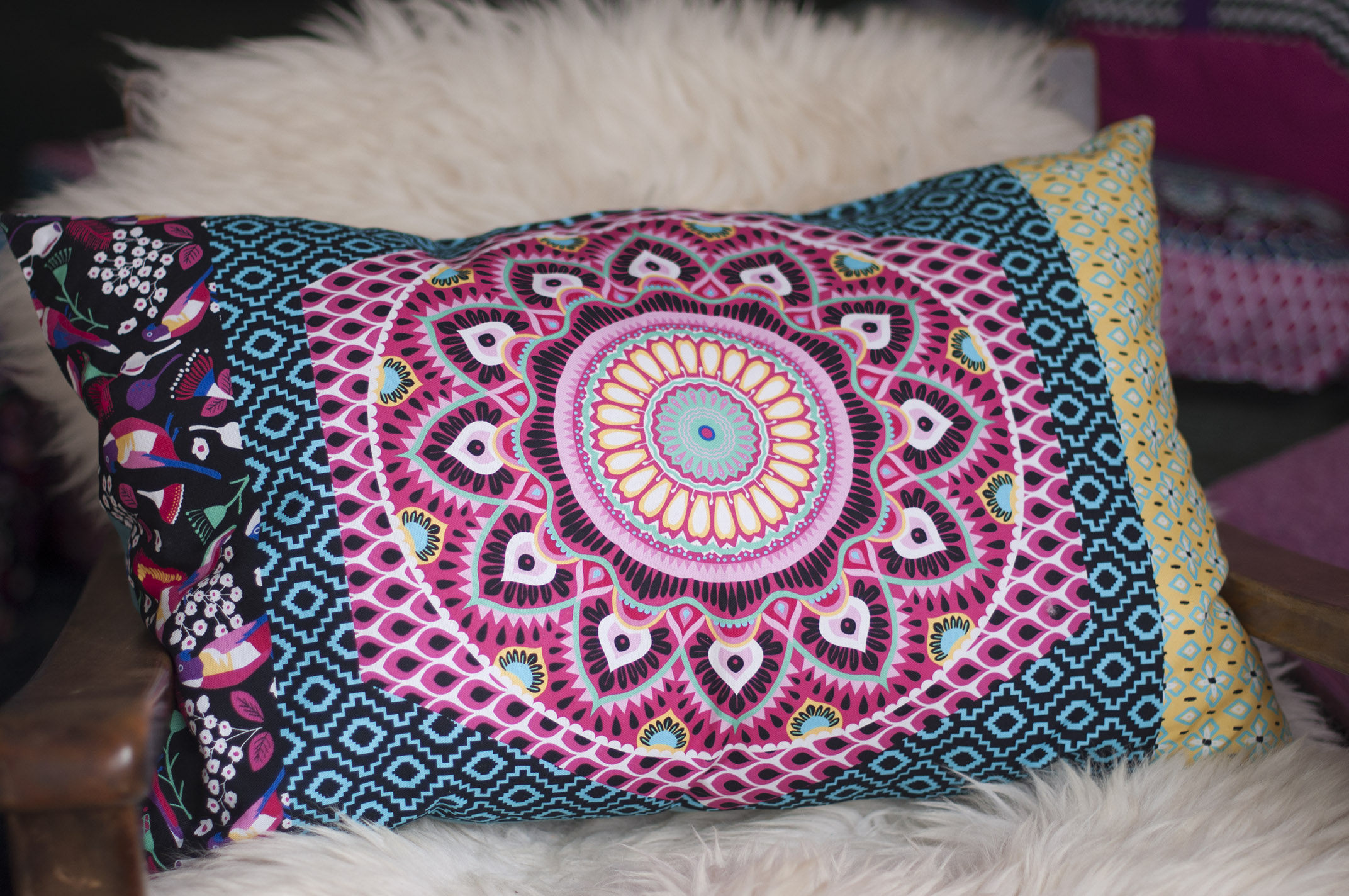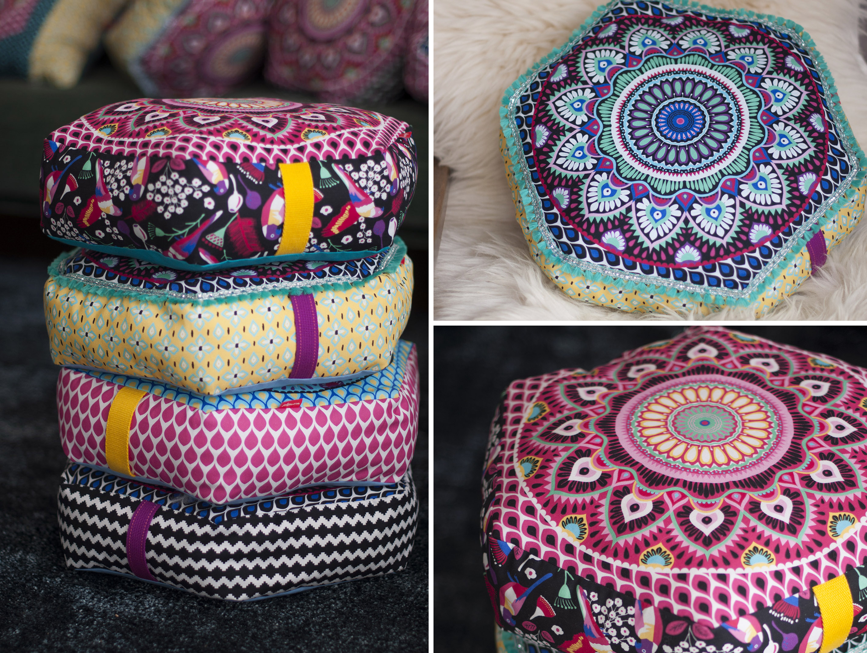 Ob rund, viereckig oder hexagonförmig mit einem zentralen Mandala-Motiv und einem passenden Seitenstreifen das entscheidet ihr selber. Einfach ausschneiden und loslegen. Kissennähen war noch nie so einfach! Aber das ist längst nicht alles, denn meine unfassbar kreativen Designnäherinnen haben mich mit ihren vielen weiteren Ideen und Kombinationsmöglichkeiten völlig verblüfft! Seht selbst …