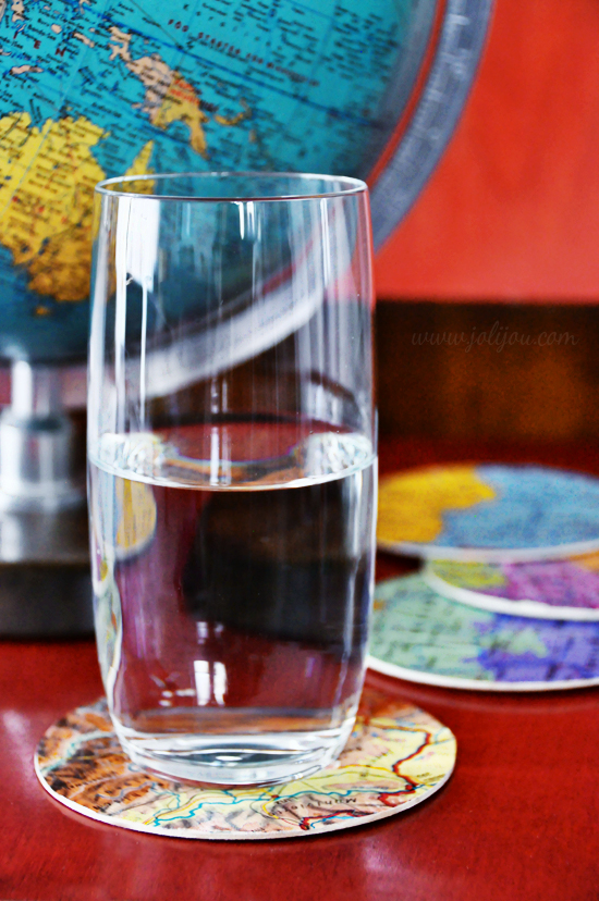 oder wie wäre es mit Landkarten-Untersetzer aus alten Landkarten?