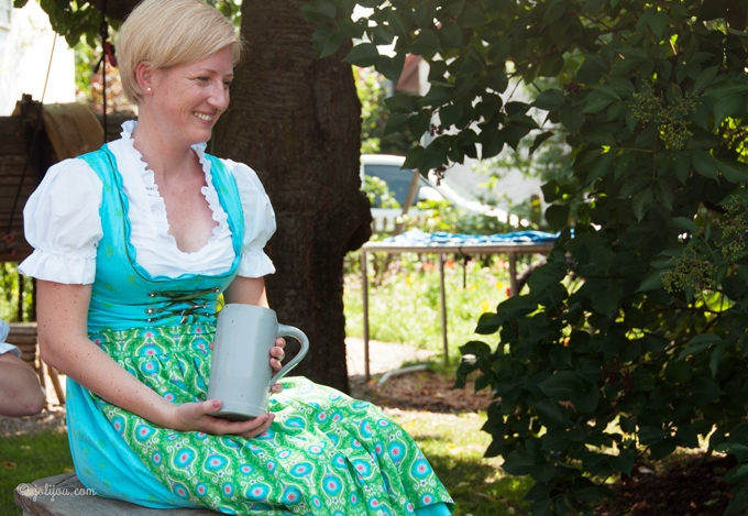Nur ein paar Wochen und zwanzig (!!) selbst genähte Lena und Anna Dirndl später trafen wir uns in Renates wunderschönem Garten zum Fotoshooting und anschliessendem Brunchen wieder. Anscheinend haben wir uns alle wohl zu sehr gewünscht, dass das Wetter schön wird, denn es war der bisher heißeste Tag des Jahres. Ihr könnt euch vorstellen wie wir alle in unsere Dirndl geschwitzt haben. An dieser Stelle möchte ich mich ganz herzlich bei allen Beteiligten bedanken, und diesen Post den wundervollen Damen widmen, die so herrlich unkompliziert und fröhlich und von Anfang an voller Begeisterung nicht nur dabei sondern mitten drin waren, in den letzten Wochen jede freie Minute für Dirndlnähen geopfert haben und mit mir schliesslich beim Fotoshooting um die Wette geschwitzt haben. DANKE! Ohne euch gäbe es diese tollen Bilder nicht.