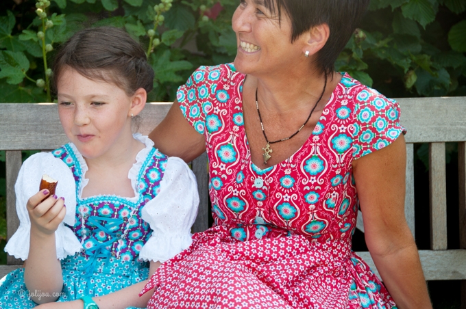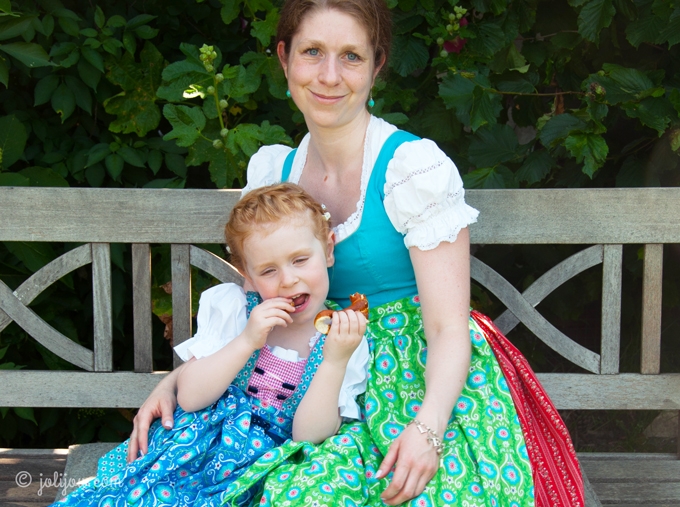 Traumhaft – die Stoffe, die Dirndl, die Fotos! Eins schöner als das andere. Ich finde Dirndl einfach wunderschön und es ist jammerschade, dass man das bei uns nicht tragen kann. An der dänischen Grenze sieht das dann eher nach Kostüm zum Fasching aus 🙂