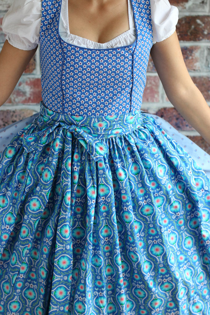 Liebe Emma, so schade, dass du nicht dabei warst! Dieses grandiose Foto tröstet mich aber darüber hinweg, was für ein großartiges Dirndl! Vielen Dank! Emma hat das Dirndl Anna aus Little Blossom und Poppy Go Lucky in Blau genäht. Alle Bilder könnt ihr bald in ihrem Blog Frühstück bei Emma bewundern.