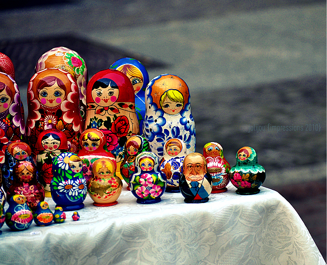Zum Leidwesen der Leute die hinter mir liefen, winkte ich die meiste Zeit mit meiner neuen Cam in die Luft. Ich hab immer noch keine Ahnung was ich da genau mache aber es macht Spaß und so streckte ich einfach freestylemäßig meinen Arm in die Luft und drückte blind drauf los während der andere Arm von wechselnden Minimüllers in Richtung Süssigkeitenstand gezogen wurde. Zum Glück gibt so ein Markt sehr dankbare Motive für bunte Bilderchen her. Über die Feiertage muss ich mir unbedingt mal das Handbuch durchlesen. Mein Lieblingsbild ist das mit den Matroschkas. Ich finde es hat was von Last Man Standing. Lach….