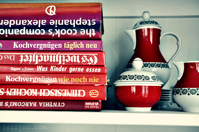 It’s been quiet around here. Regular readers will know that this means new things are brewing in the background. Apart from that, we are in building-mode and over the past few days we’ve constructed a few new bookshelves and a huge warderobe for the bedroom. After the Mr. patiently put everything up I had the joy of filling the shelves with „stuff“. Not a nasty task, I might add.