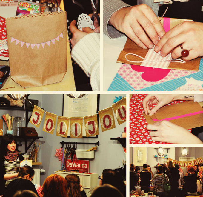 Hallo Ihr Lieben! Ich möchte euch unbedingt noch ein paar Bilder von dem Dawanda-Workshop in der Snuggery von letztem Donnerstag zeigen. Dort habe ich ja gezeigt wie man aus einfachen Mitteln schöne Verpackungen für Produkte oder Geschenke machen kann.