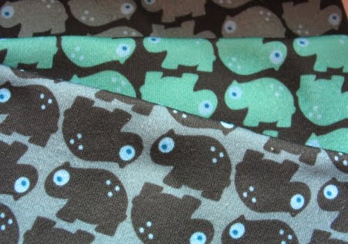 So habe ich mich vor kurzem drangesetzt und mal ein bißchen bei Spoonflower rumgespielt. Ich wollte mir selber Stoffe machen die reduziert aber trotzdem witzig, knuffig aber dennoch nicht kitschig sind. Und die Farben sollten so sein, dass sie sich mit anderen Unifarben gut mixen lassen, so dass man mal nur einen gemusterten Ärmel mit einem Uni-Vorderteil kombinieren kann. Heraus kam der kleine Agent 00-Wombi fein säuberlich aufgereiht in verschiedenen Farbtönen…